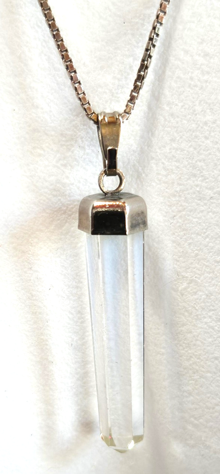 Vintage 925 Italy Silver Crystal Point Pendant Necklace 20" Long