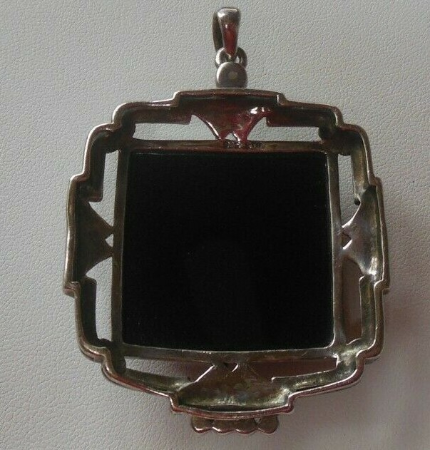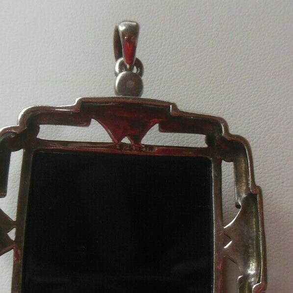 Vintage 925 Sterling Silver Black Onyx Marcasite Pendant Signed KTH