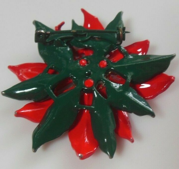 Vintage Red/Green Enamel Metal Christmas Poinsettia Flower Brooch/Pin