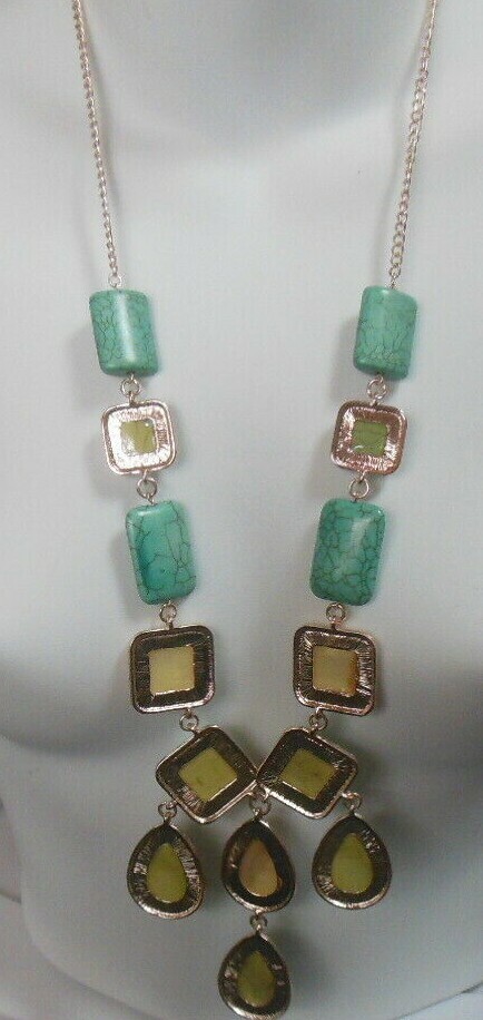 Vintage Long Silver-tone Faux Turquoise MOP Necklace