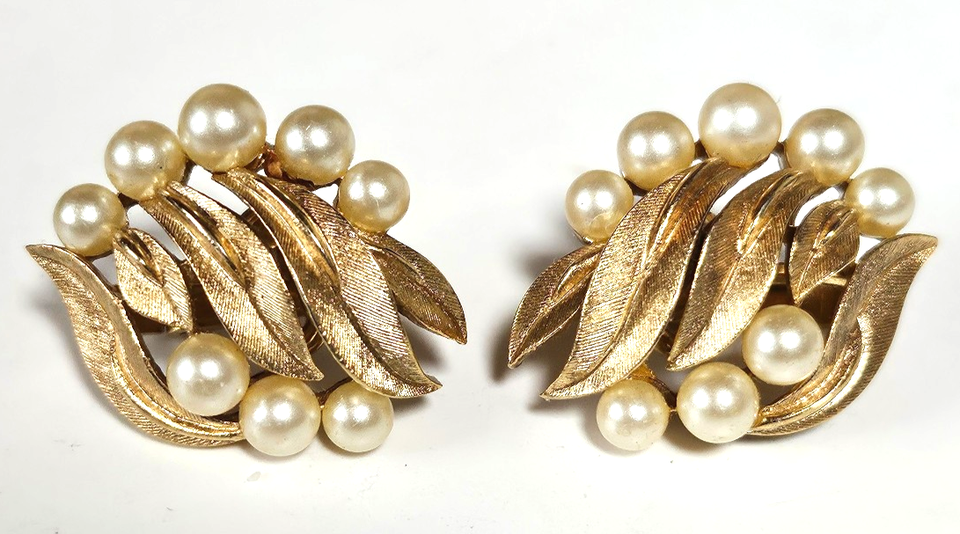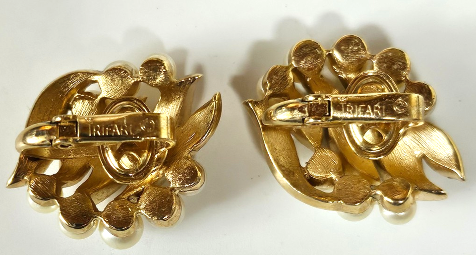 Vintage Crown Trifari Gold-tone & Pearl Clip and 50 similar items
