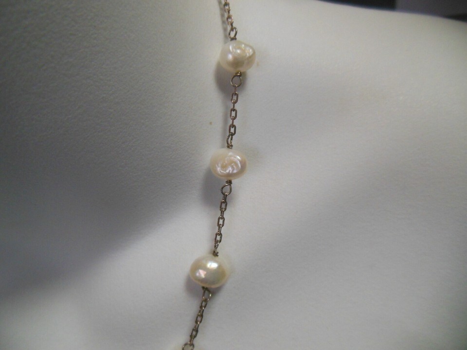 Vintage Stamped 925 Pearl Chain Necklace and similar items