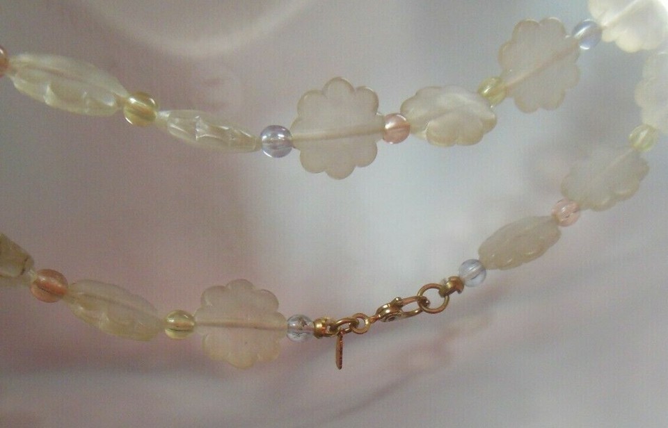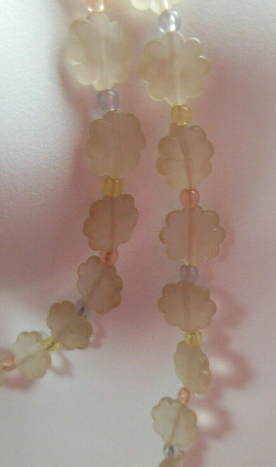vintage Long Signed MONET floral Plastic lucite necklace W/Pastel Bead Spacers