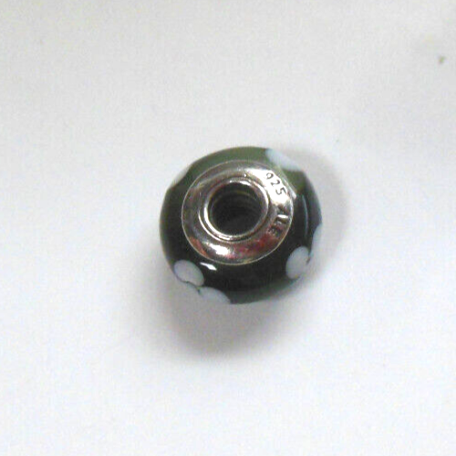 vintage pandora charm green w/white flowers 925 Ale