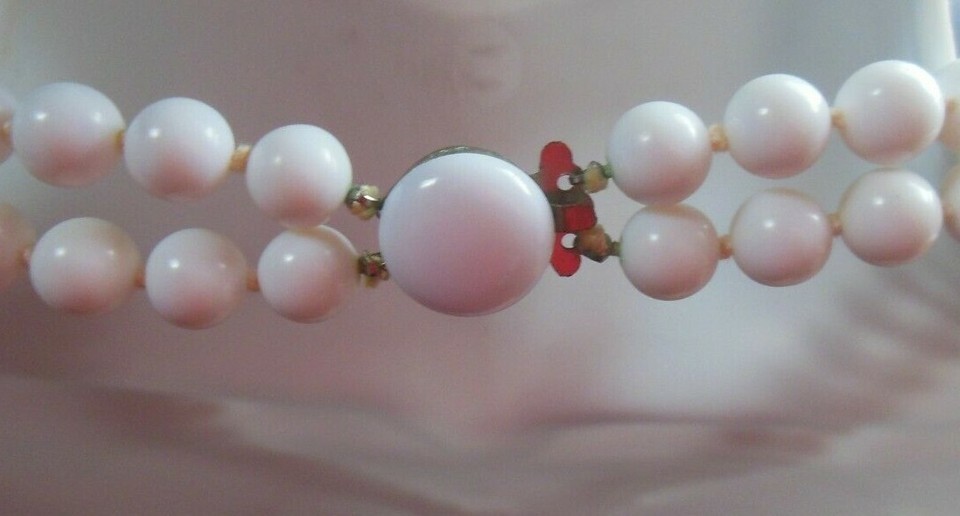 Vintage Double Strand Knotted White Milk Glass Bead Necklace Signed Japan