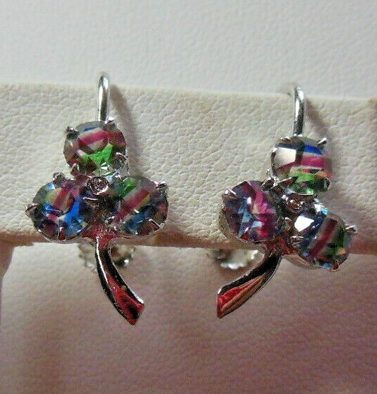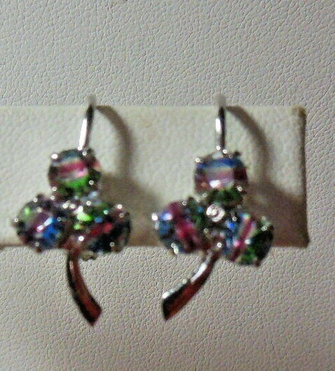 Vintage 835 Silber Rainbow Crystal Screw-back Earrings