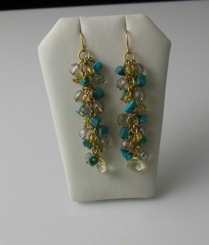 Fashion Blue & Clear Bead Long Dangling Hook Earrings 2.75" Long