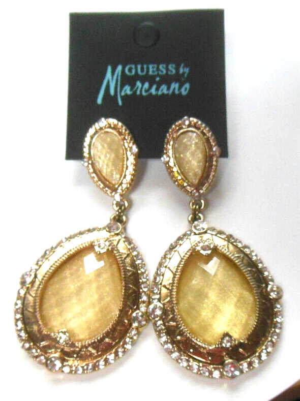 Guess by Marciano Beige Yellow Color & Clear Rhinestone Dangle Pierced Earrings