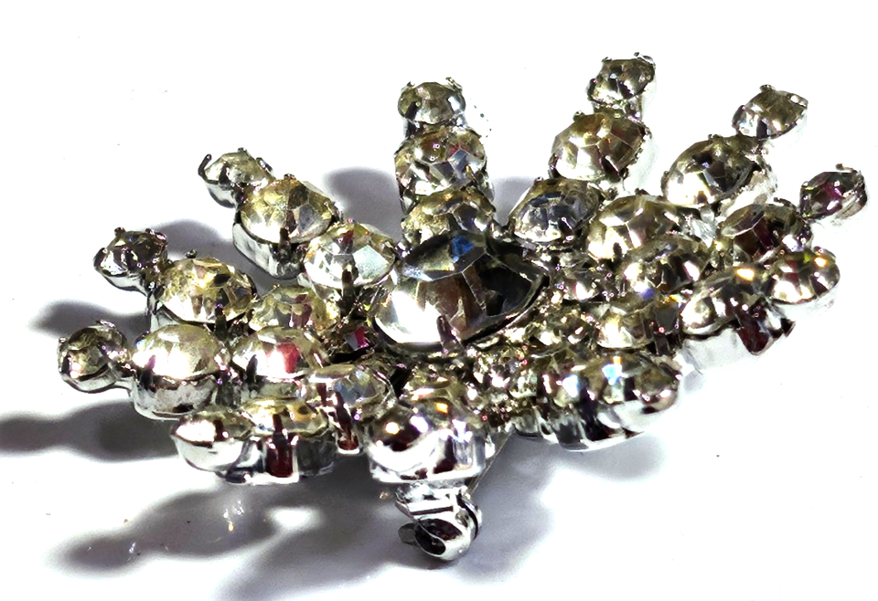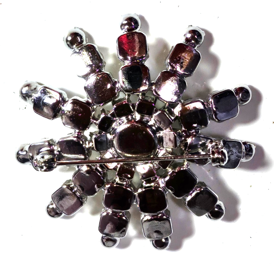 Vintage high end snowflake sunburst clear rhinestone brooch 2" Diameter