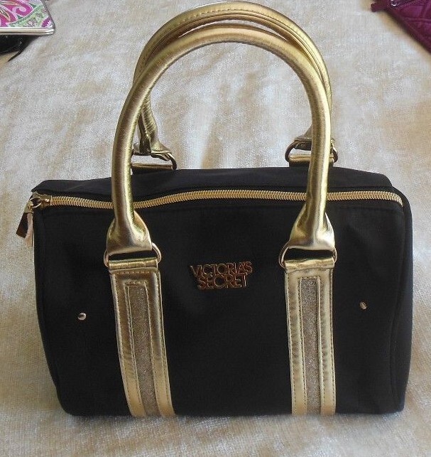 Victoria's Secret Black/Gold-tone Fabric Handbag/Cosmetic Bag