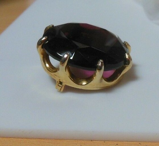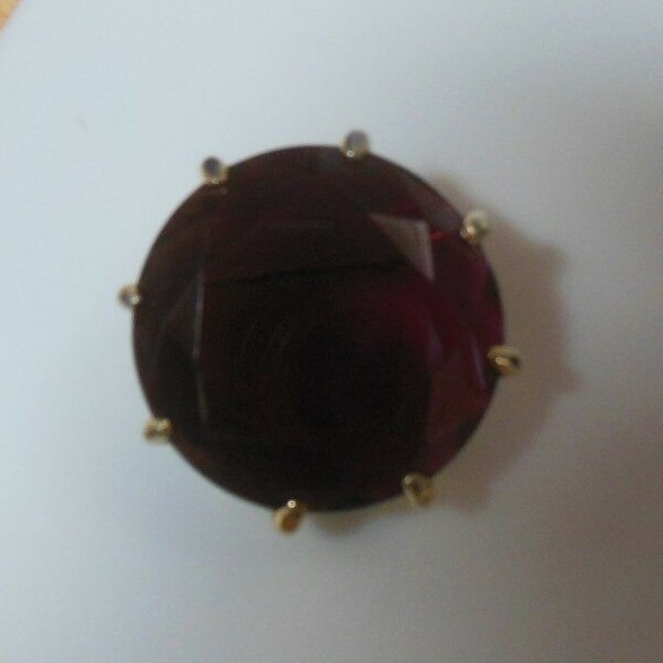 Vintage Large Round Gold-tone Faceted Purple Glass Brooch