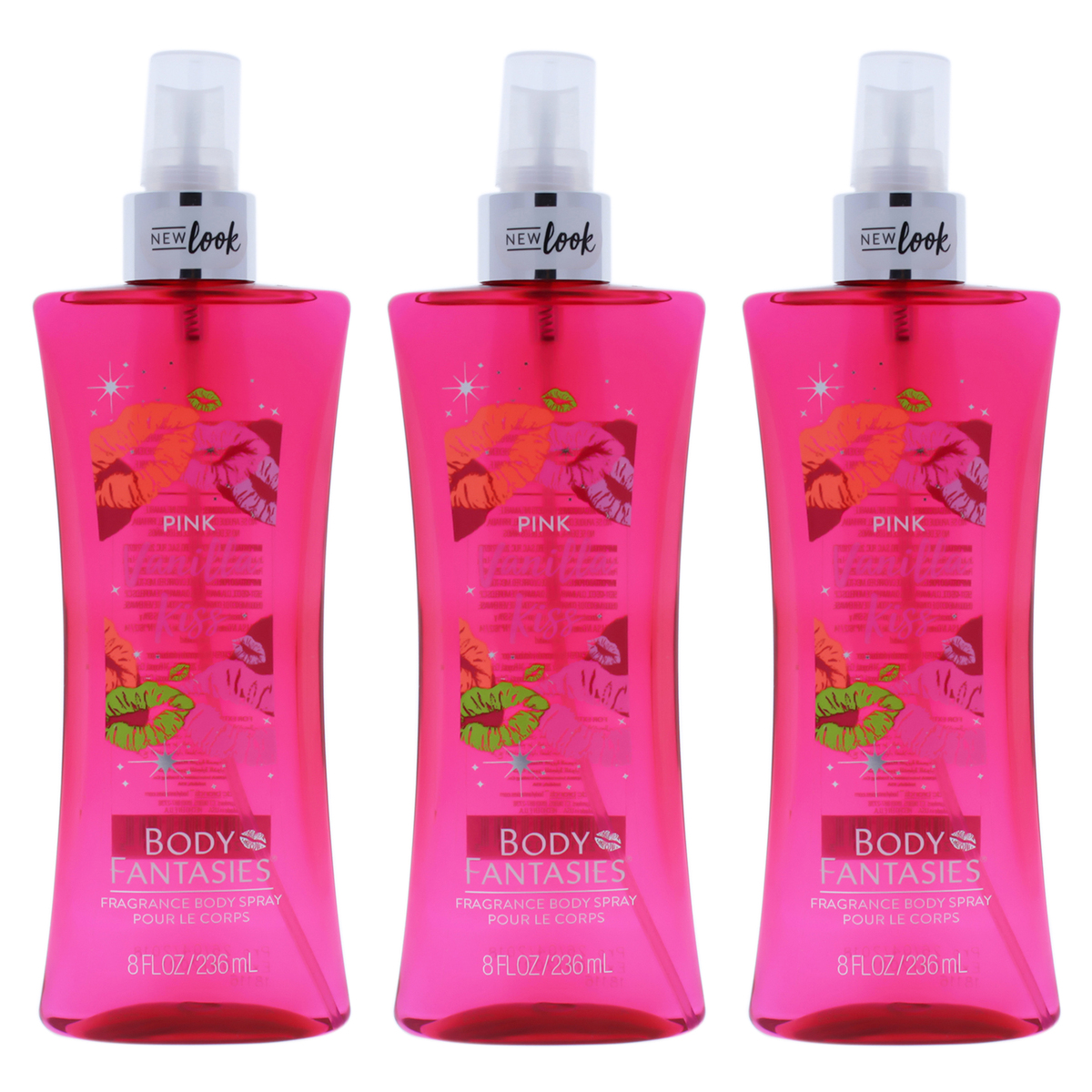 Pink Vanilla Kiss by Body Fantasies for Women - 8 oz Body Spray - Pack of 3
