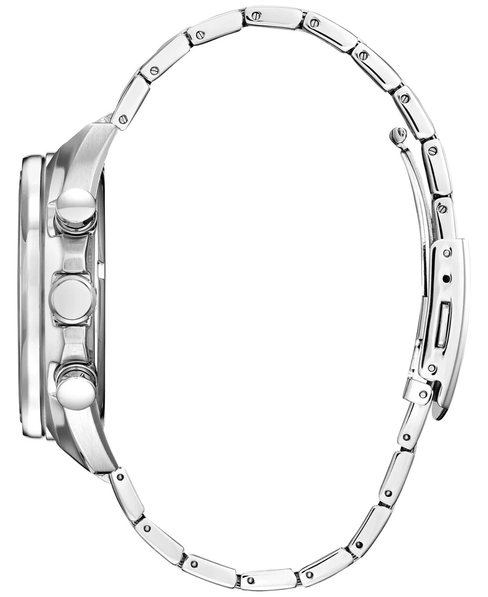 This Citizen watch has a case made of stainless steel with a diameter of 39.5 mm and is fitted with a stainless steel band. Inside the case lies a Citizen movement and the watch features a Mineral crystal.