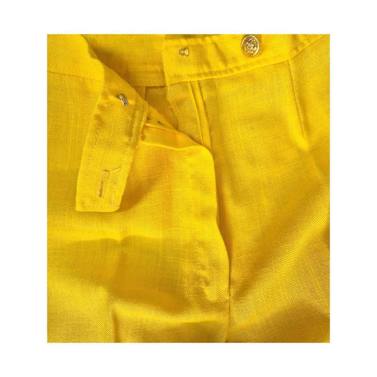 VTG 1970s Yellow Linen Wide Leg Trousers High Waist Disco Pants XS