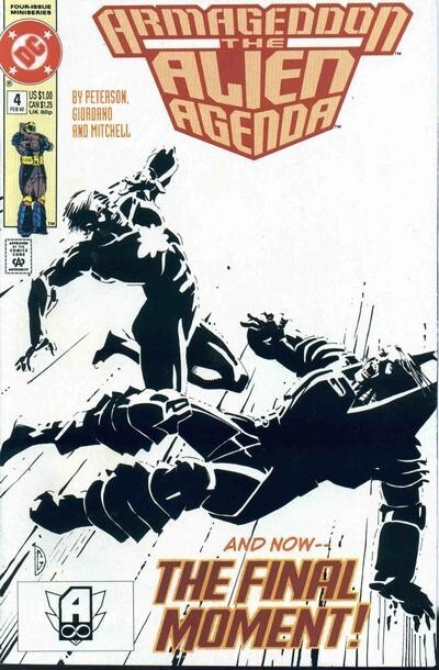 *In the year 2030, Matthew Ryder dreams of a time when the world wasn't under the heel of Monarch, and sets out to change the world as Waverider in "Darktime". The identity of Monarch is revealed, Waverider sees Captain Atom's future and Metropolis faces destruction in this untitled tale. Story continues in Armageddon: Alien Agenda #1. Script by Dennis O'Neil, pencils by Dan Jurgens, inks by Art Thibert, Steve Mitchell and Dick Giordano.