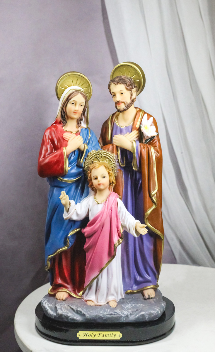 ? The Holy Family consists of the Child Jesus, the Virgin Mary, and Saint Joseph. Veneration of the Holy Family was formally begun in the 17th century by Saint Francois de Laval, the first bishop of New France. This figurine beautifully depicts the Holy Family and the story of Jesus Christ growing up as a child boy. Jesus did not come to the earth born in a royal family but he came to the world in a very ordinary family. God works in mysterious way, using ordinary people to do the extraordinary!