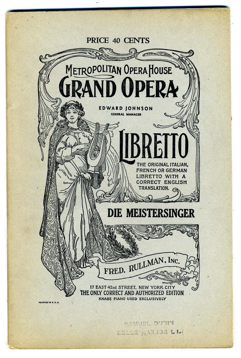 DIE MEISTERSINGER Libretto Metropolitan Opera House Grand Opera Fred Rullman