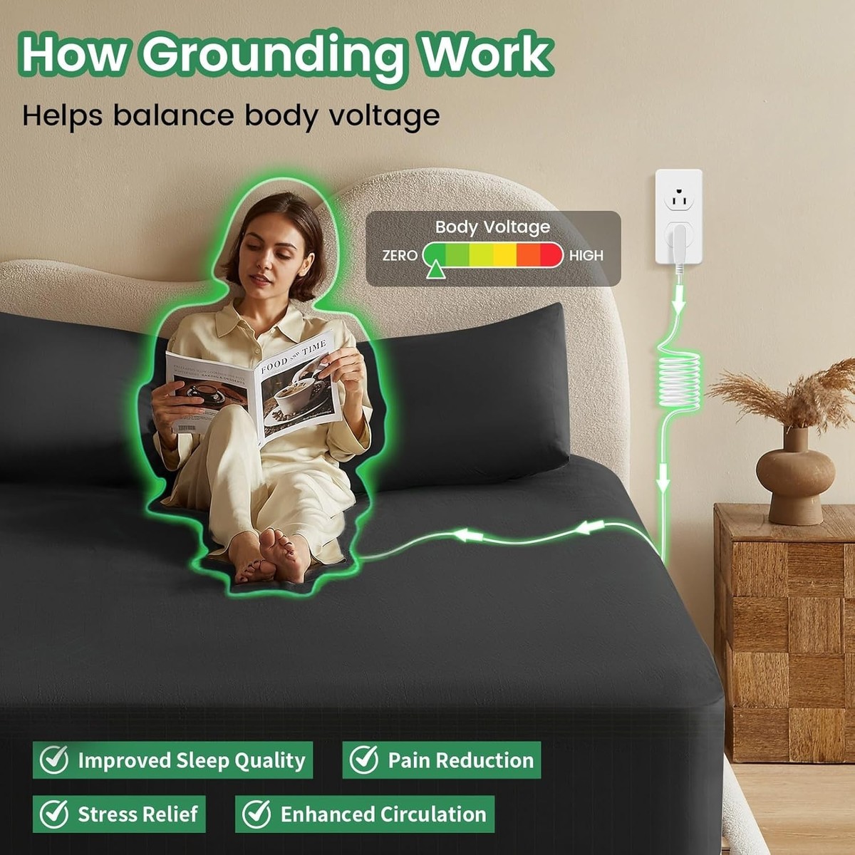 Straightforward Installation: Connecting to the Earth's natural electron flow is easy?simply attach one end of the grounding cord to the sheet and plug the other end into a wall outlet's ground port.