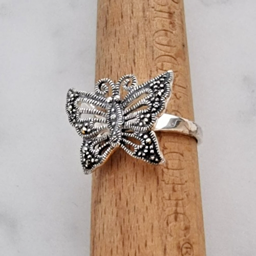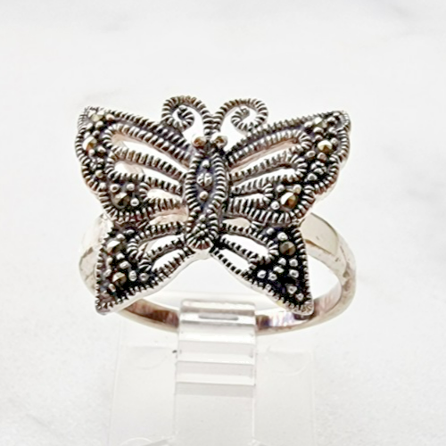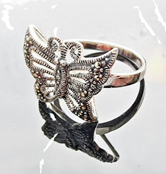 BEAUTIFUL 925 STERLING SILVER MARCASITE BUTTERFLY RING SIZE 7.75