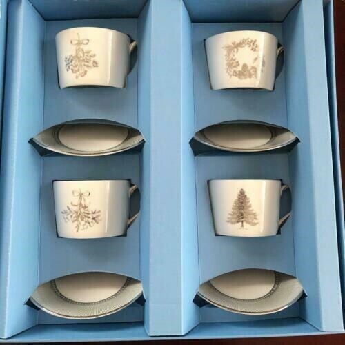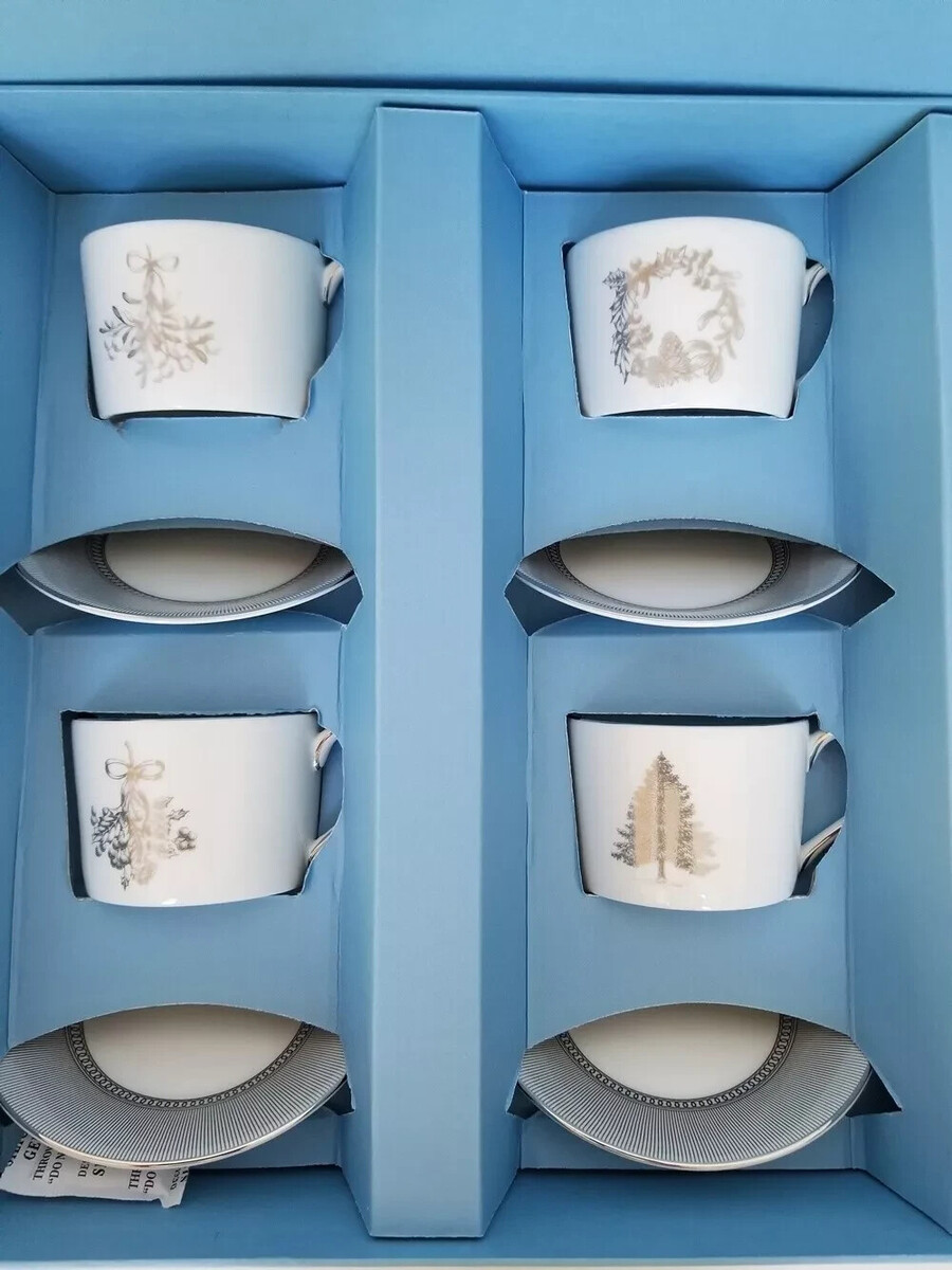 Wedgwood Winter White Tea Service For 4 Teacups & 4 Saucers #40032858 NEW IN BOX