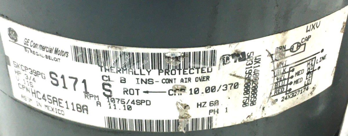 GE 5KCP39PGS171S Furnace Blower Motor 1075RPM 4SPD 3/4HP 115V HC45AE118A #CMP508