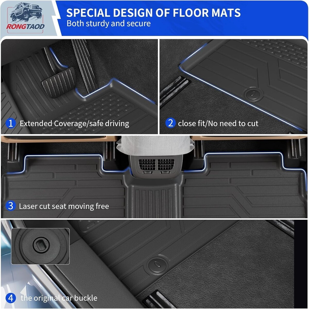 Material: Our mats are made of high quality TPE material, which is soft, odorless and environmental-friendly, and will not pose a health threat to passengers in the car. This material provides an excellent experience, capable of withstanding high temperatures, severe cold, and scratches.