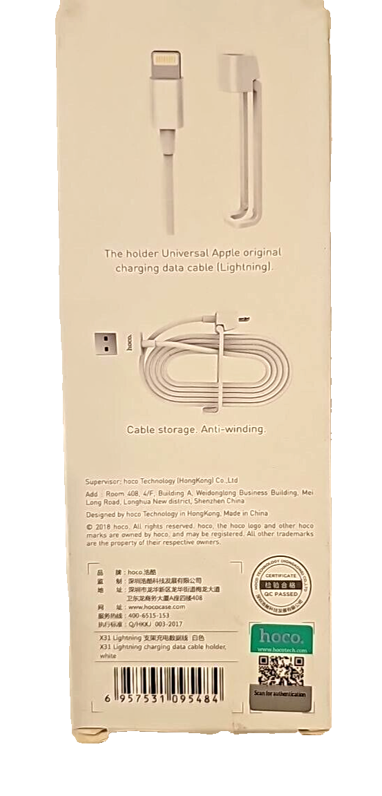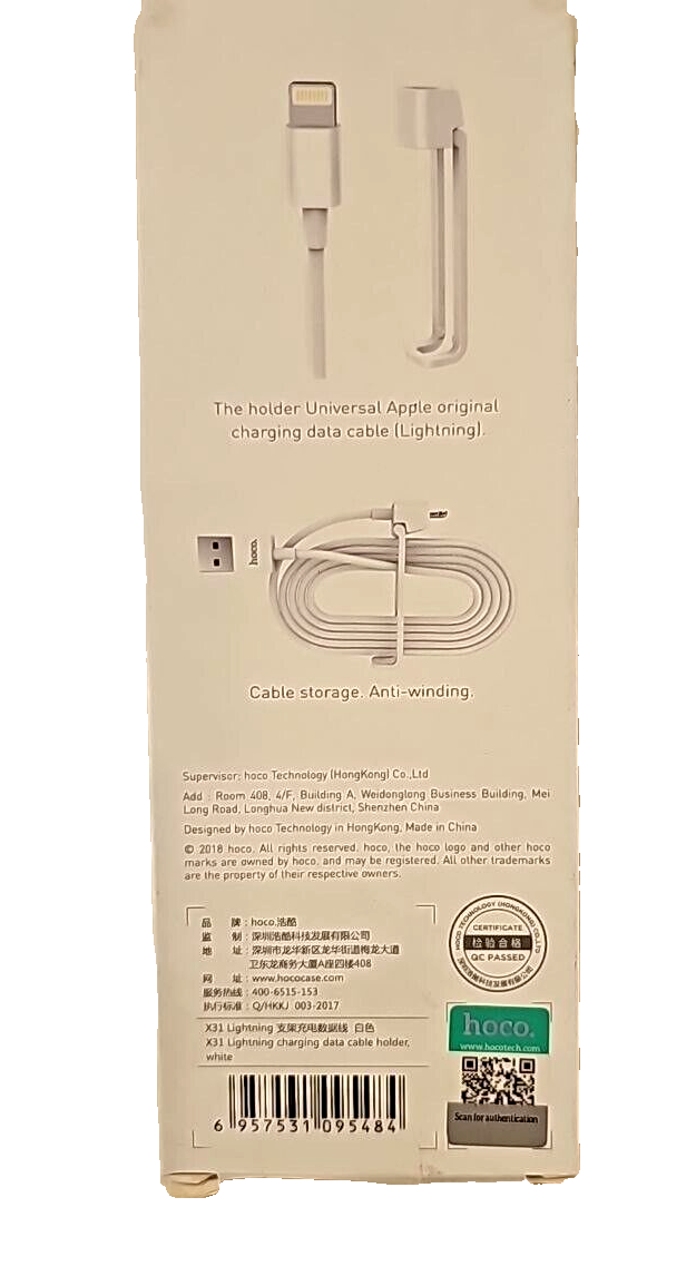 Item includes: Hoco X31 Lightning Charging Data Sync Cable with Holder.