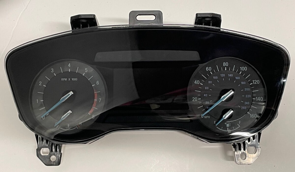 This is a factory original 2014-2015 Ford Fusion gauge cluster that has never been installed in a vehicle. We have multiples. They usually have very light blemishes from rubbing against a neighbor. It is unknown if this cluster has been programmed and, if so, how many miles were programmed into it or if it was experimented with by the engineering department. (It came with a batch of Chrysler clusters which appeared to be engineering samples.) So you are taking a bit of a chance. However, a warranty of 30 days is included, for your peace of mind. Please do not blame us if you find you need to return it. We have been very forthright about what we know about these...
