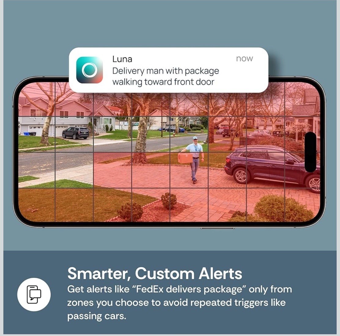 Uso Camara de ventana, claridad Ultra-HD de 3MP para día y noche, instalacion facil y rapida, 2.4 GHz, WiFi 6, aplicacion gratuita para telefono, alertas GenAI