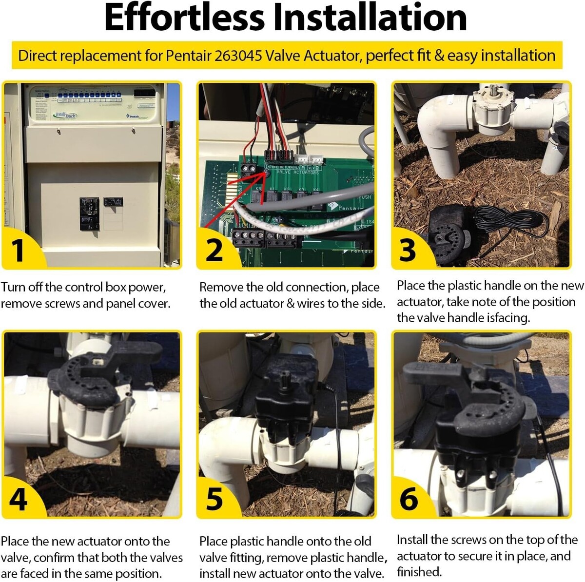EFFORTLESS INSTALLATION - manufactured to OEM specification to ensure best fit and easy installation, directly replace for Pentair 263045 Valve Actuator. Fully selected tested to provide stable performance and high reliability