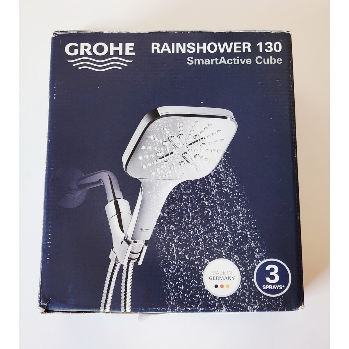 Defined by its sleek profile and designed to soothe and satisfy, the Grohe Rainshower SmartActive Hand Shower features three essential spray functions with fingertip control. This intuitive hand shower delivers an invigorating Rain spray, an stress-reducing ActiveMassage spray, and a Jet spray for a post-workout power shower. Engineered with the Grohe SmartTip control to switch between sprays with fingertip ease, this slim, minimalist design is enhanced by an ergonomic handle for a secure, comfortable grip. Set includes hand shower, bracket and 59โ metal hose.