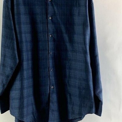 Geoffrey Beene Mens XL Navy Blue Textured Grid Long Sleeve Button Down Shirt