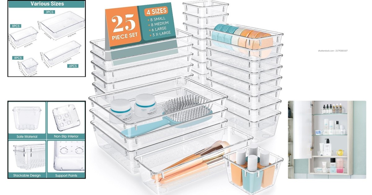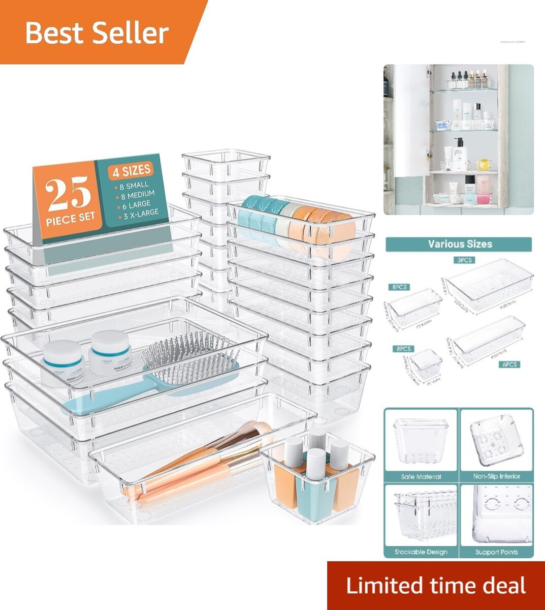 25 PCS Stackable Clear Plastic Drawer Organizers - Versatile Storage Solutions