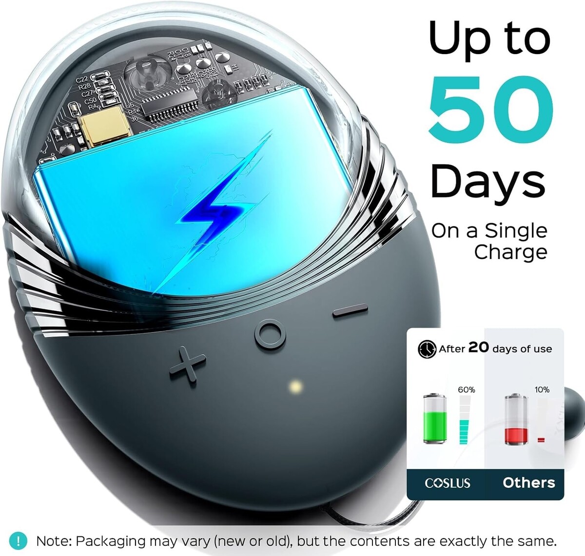 50 Days Ultra-Long Battery Life: Powerful battery provides twice the battery life of competitors, with just 1.5 hours of charge offering up to 50 days of use. Handy USB cable included for charging.