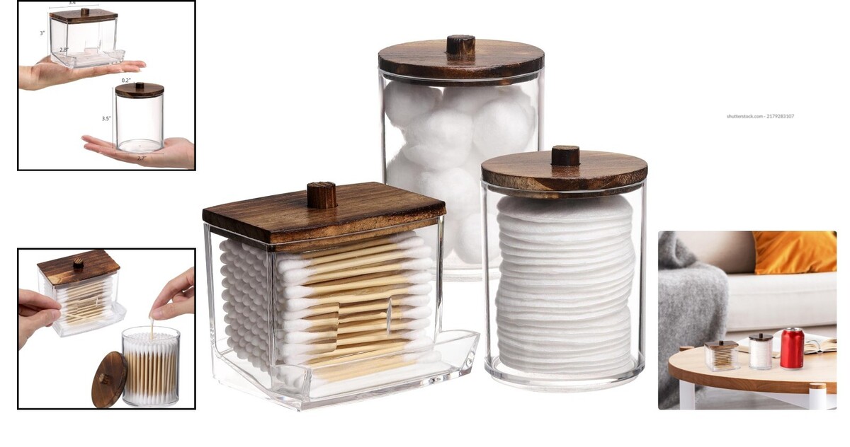 Perfect for storing Q-tips, cotton balls, cotton rounds, and flossers