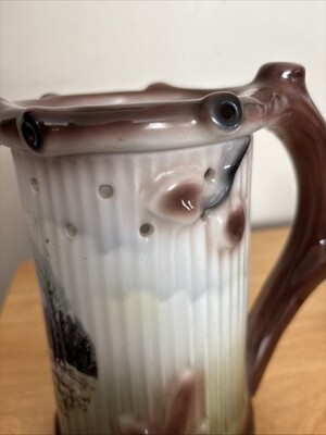 The product is a stein featuring a wild boar design, designed as a puzzle drinking game mug. As part of breweriana collectibles, this unique piece would be a great addition for collectors or beer enthusiasts. The stein combines functionality with entertainment, making it a fun and interesting item to have for enjoying beverages.