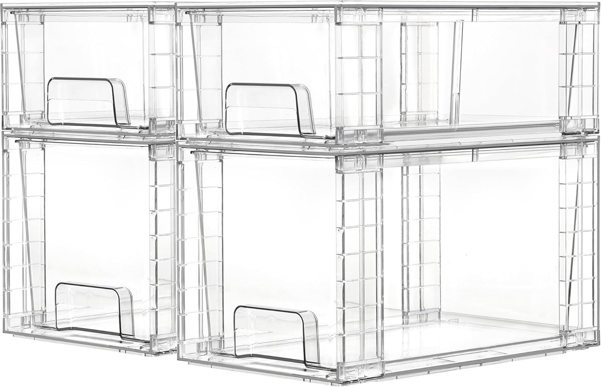 Easy-to-Assemble Stackable Clear Drawers - 4 Count for Home Organization