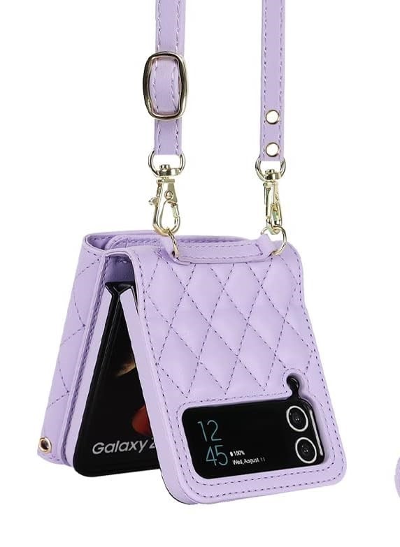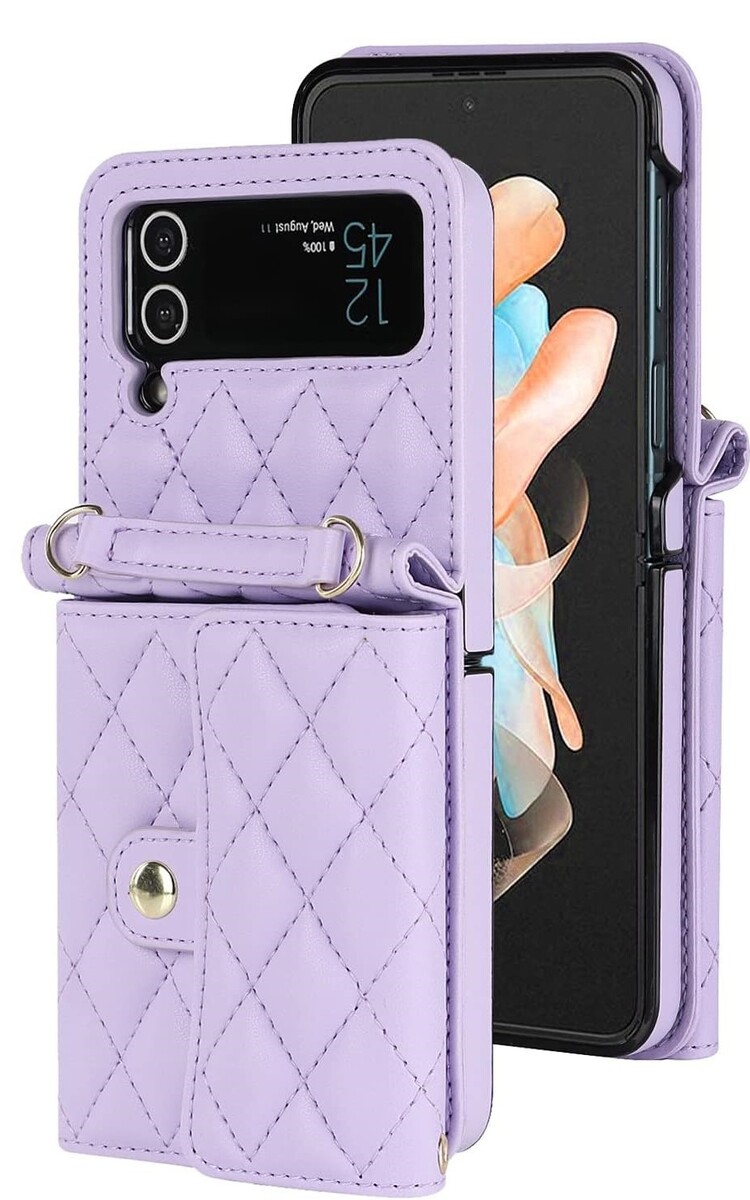 Ximand Samsung Galaxy Z Flip 4 Accordion Crossbody Wallet Case Purple