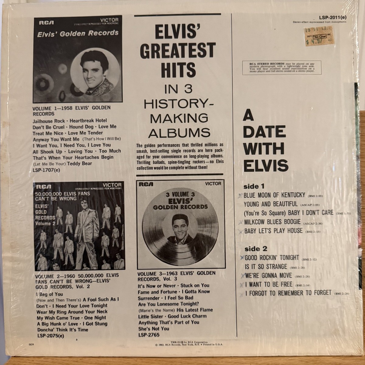 Elvis Presley A Date With Elvis Vinyl LP RCA LSP-2011(e) Blue Moon Of Kentucky