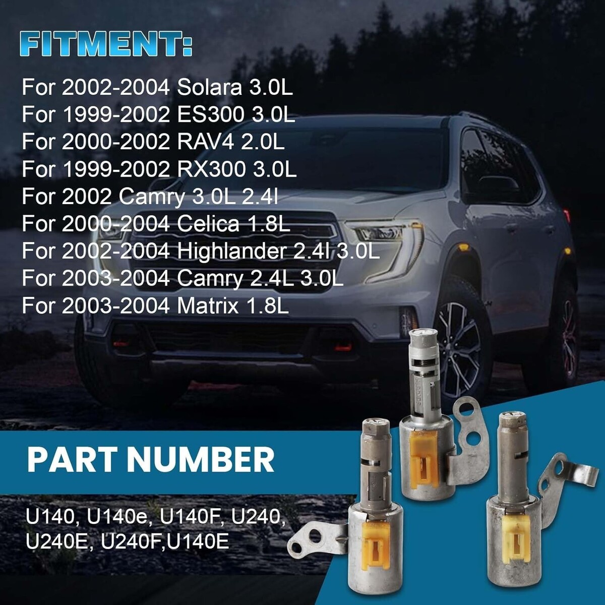 5pcs Transmission Solenoid Transmission Shift Solenoid kit U140E U241E Fits for Solara ES300 RAV4 RX300 Camry Celica Highlander Matrix(Refurbished parts)