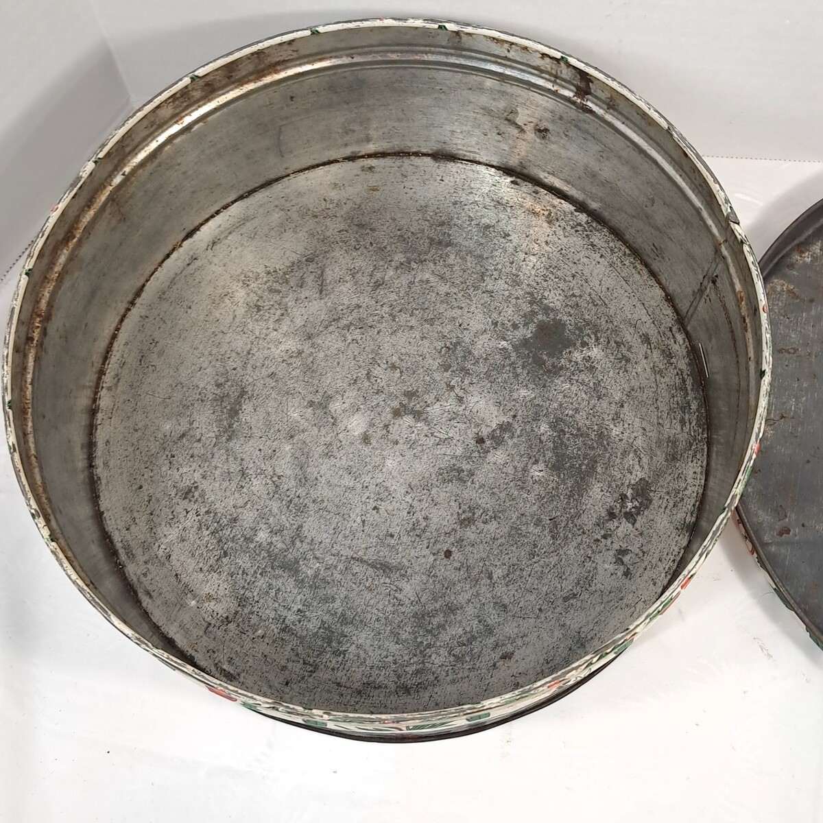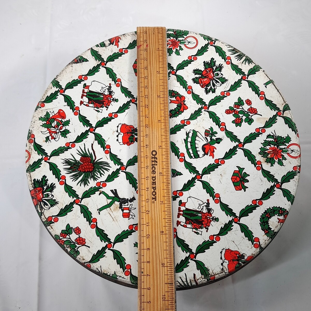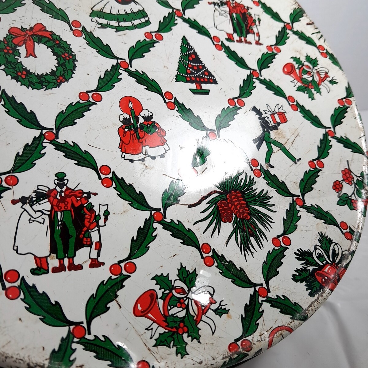 Vintage Christmas Metal Candy cookie Tin Red Green holly carolers mistletoe