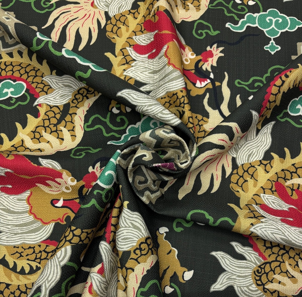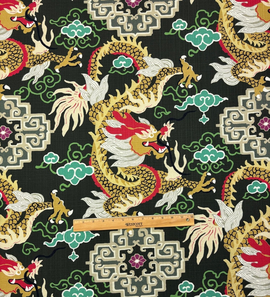 P KAUFMANN ROYAL DRAGON EBONY BLACK GOLD TOILE MULTIPURPOSE FABRIC BY YARD 54"W