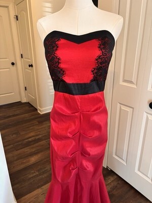 Gothic Red Black Mermaid Gown Vampy Dark Romance Lace Formal Dress Sz 5 Formal