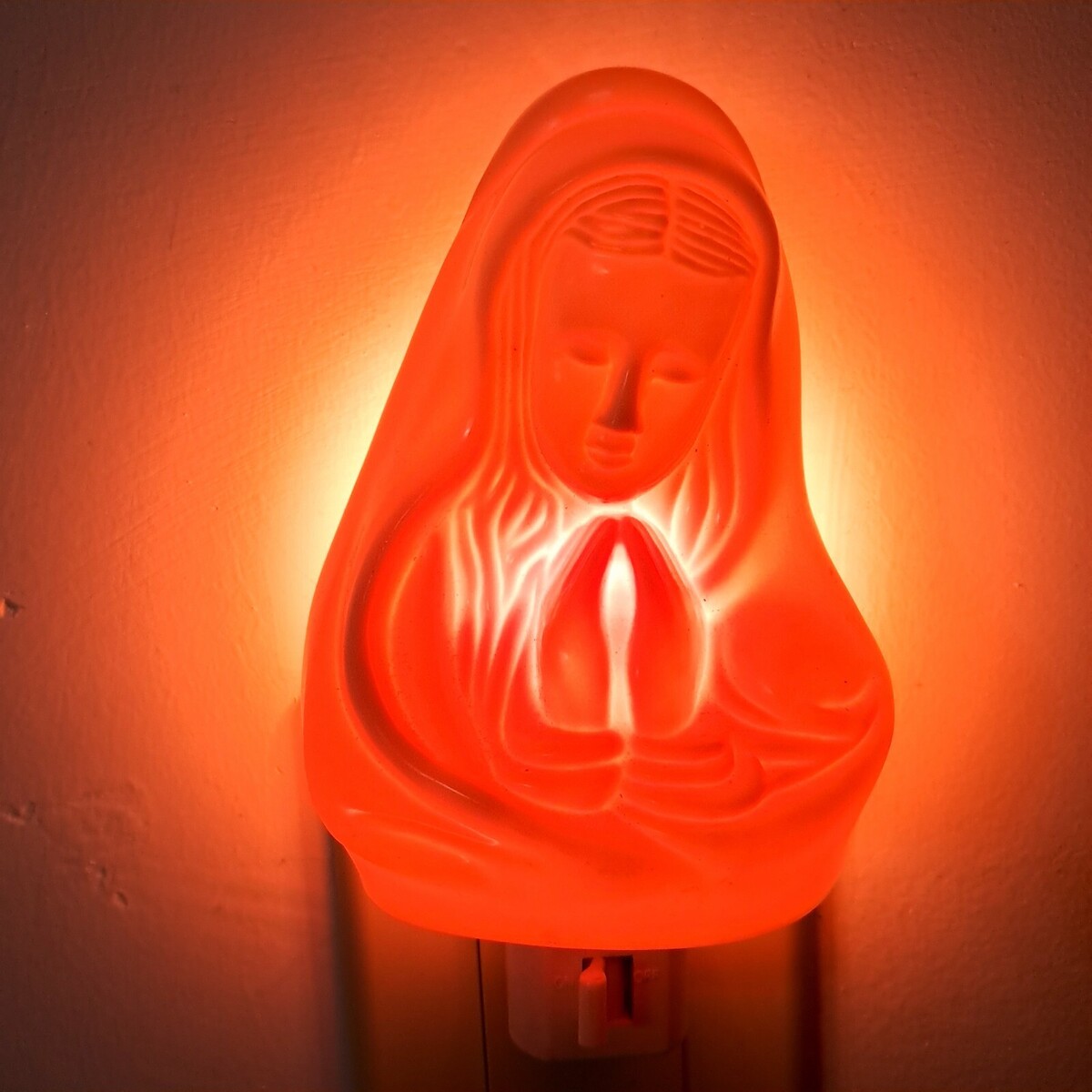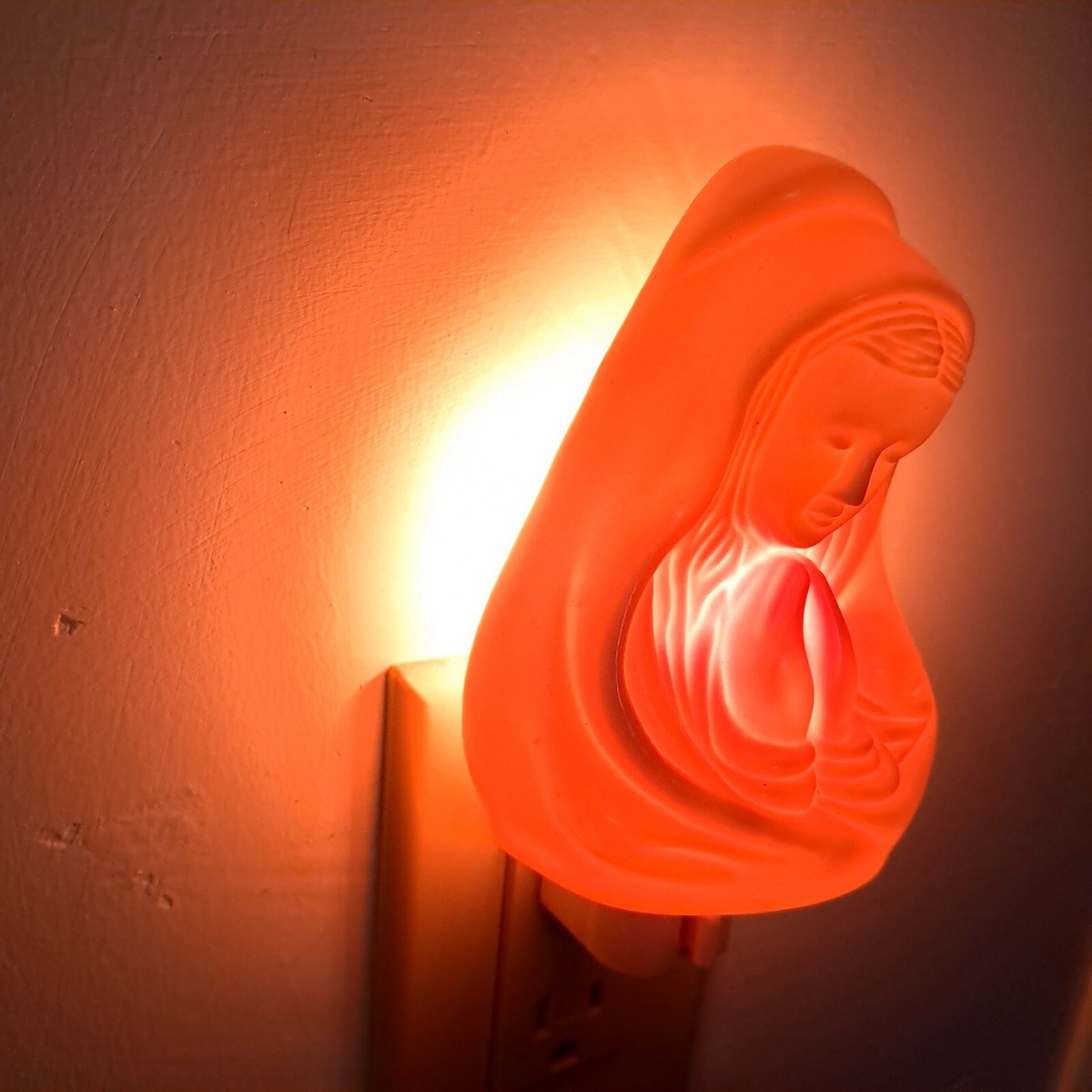 Magician Virgin Mother Mary night light plug in cream plastic praying vintage