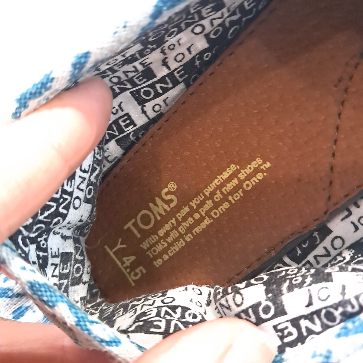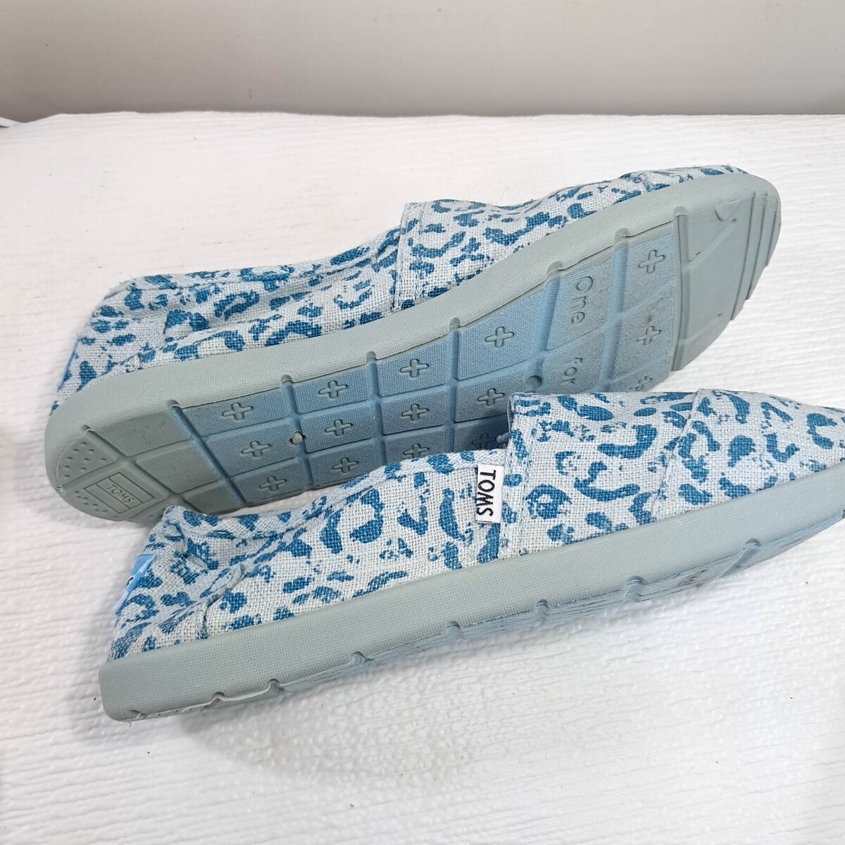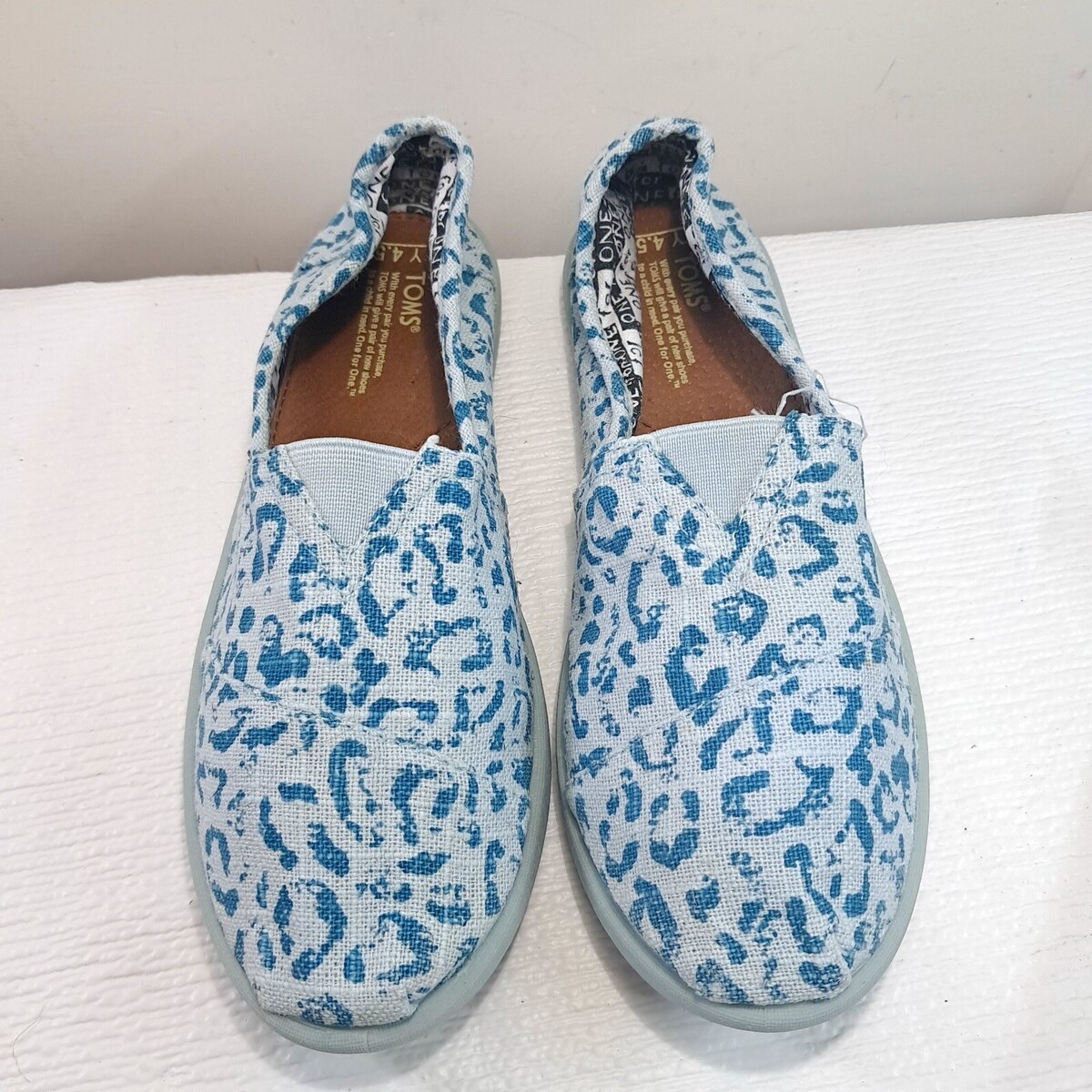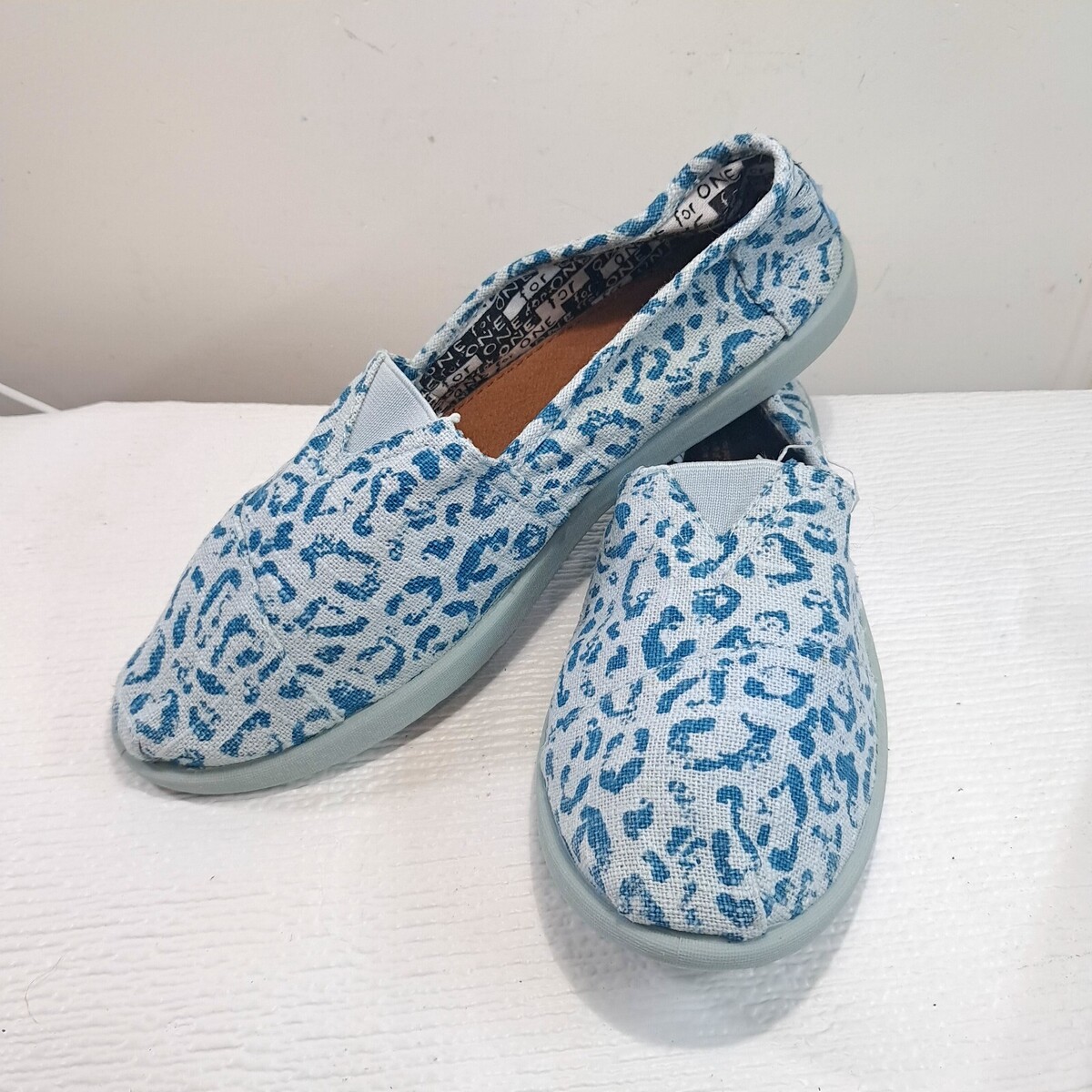 Toms youth sz 4.5 blue leopard shoes cheetah girls slip ons canvas animal print