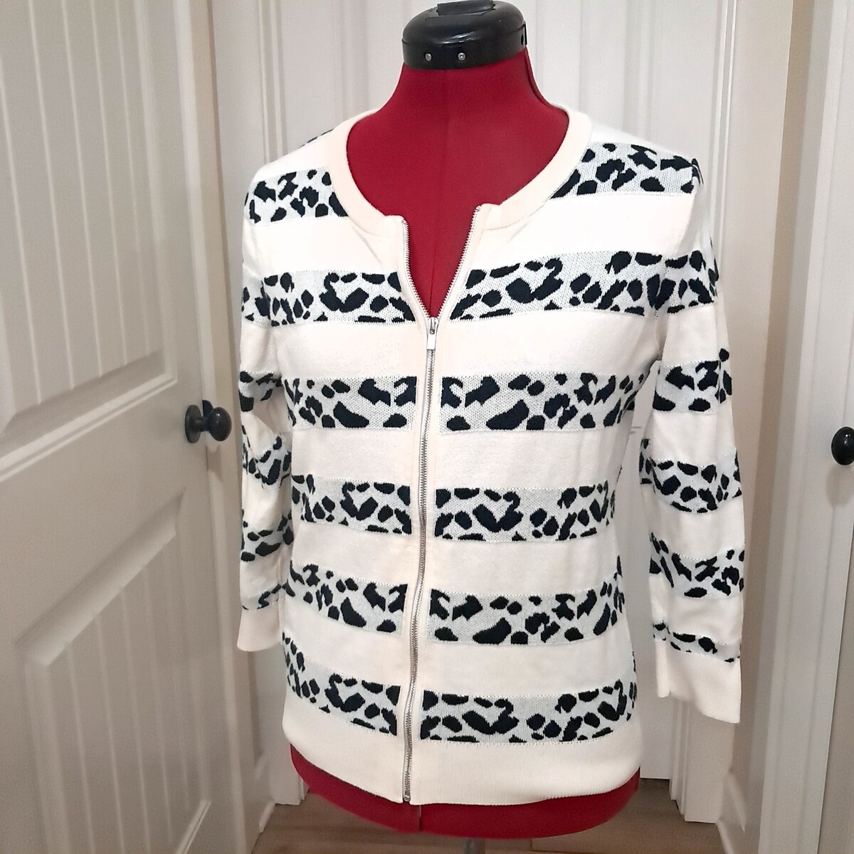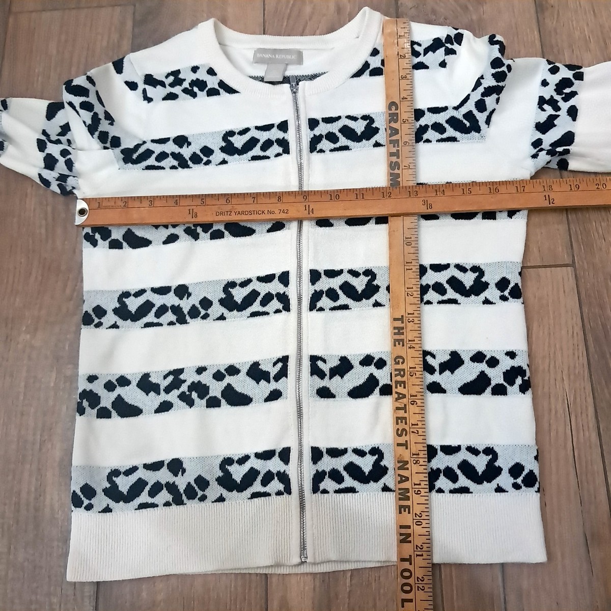 Banana Republic womens cardigan sweater sz M dalmatian spots animal print stripe