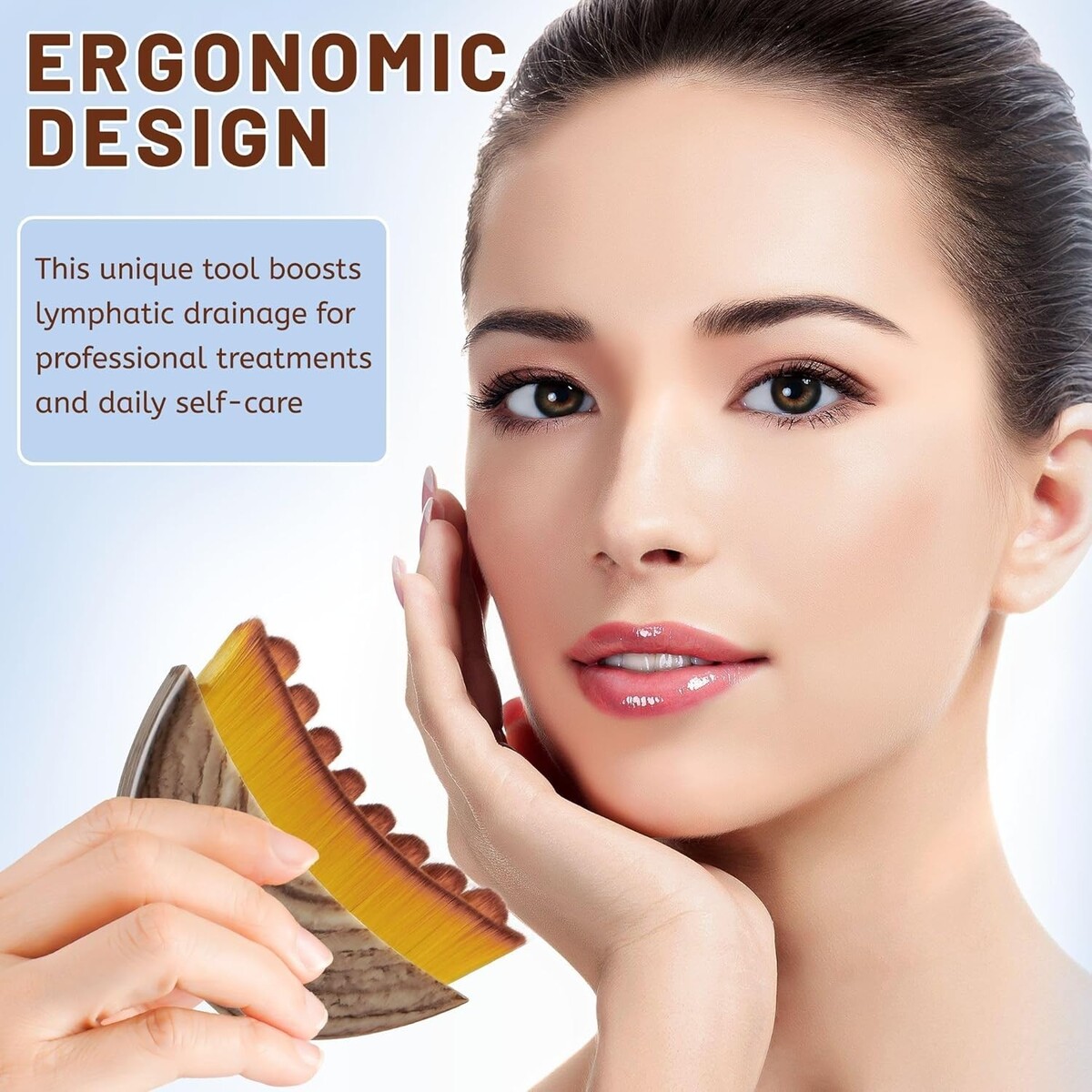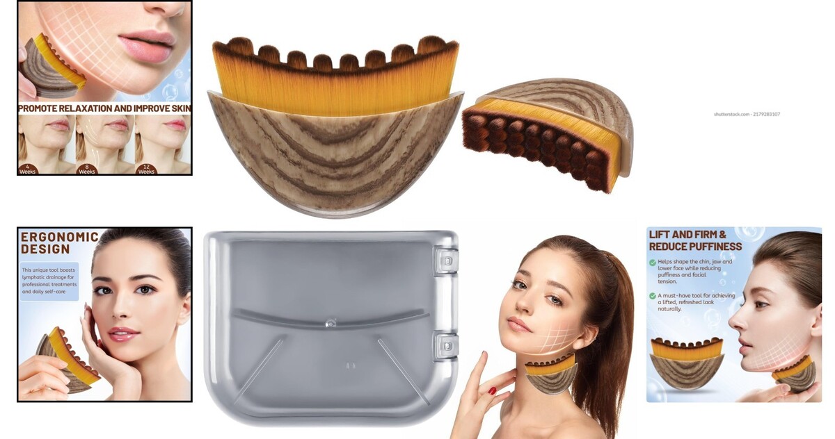 Ergonomic contour brush with a 30 mm arched bristle surface, enhancing lymphatic coverage efficiency by 32%.