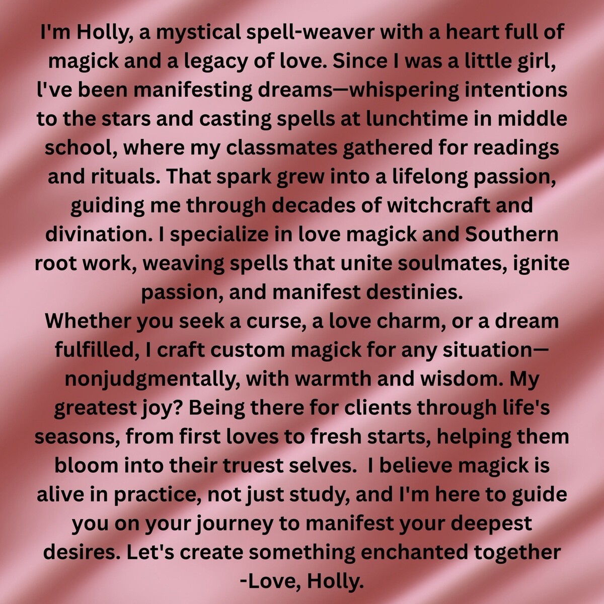 ? Custom-Tailored Love ? The spell is shaped exactly to your situation and desires, so the results feel personal and right for you.