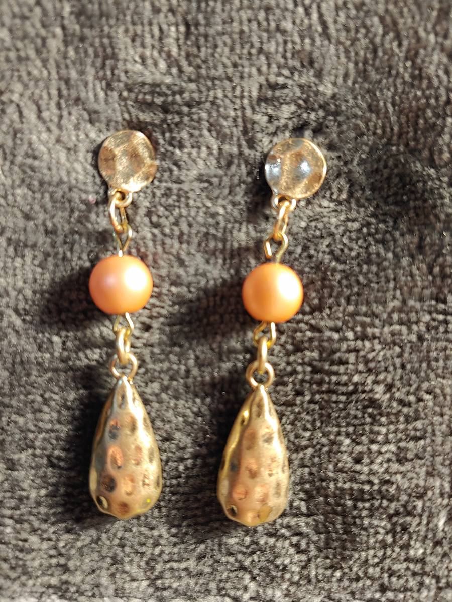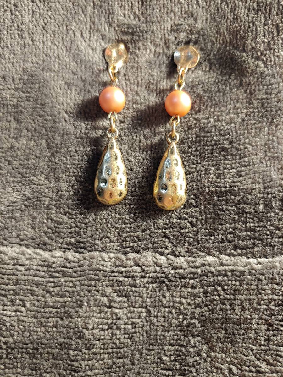 Hammered Metal and Pink Pearl Earrings and 49 similar items