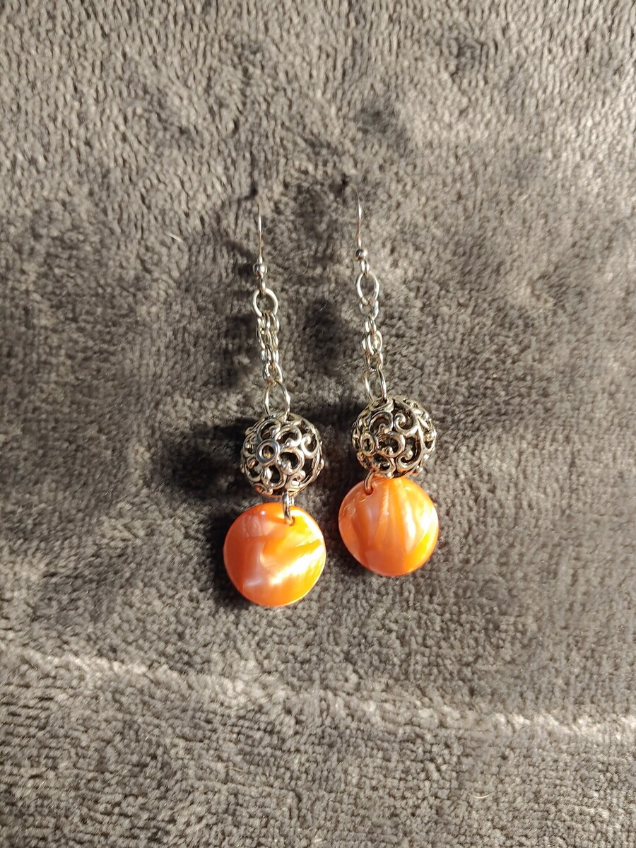 = These earrings are about 2.5 inches from the top of the ear wire to the bottom of the circle shell.
